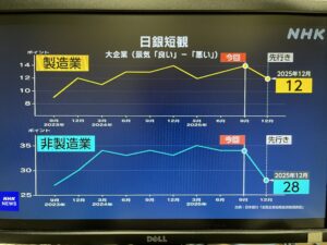 日本銀行の全国企業短期経済観測調査、いわゆる日銀短観の業況判断DIは、日本の景気動向をつかむうえで最も注目されている指標の1つです。調査は四半期ごとに行われ、10月1日に直近(2025年9月)の調査結果が公表されています。